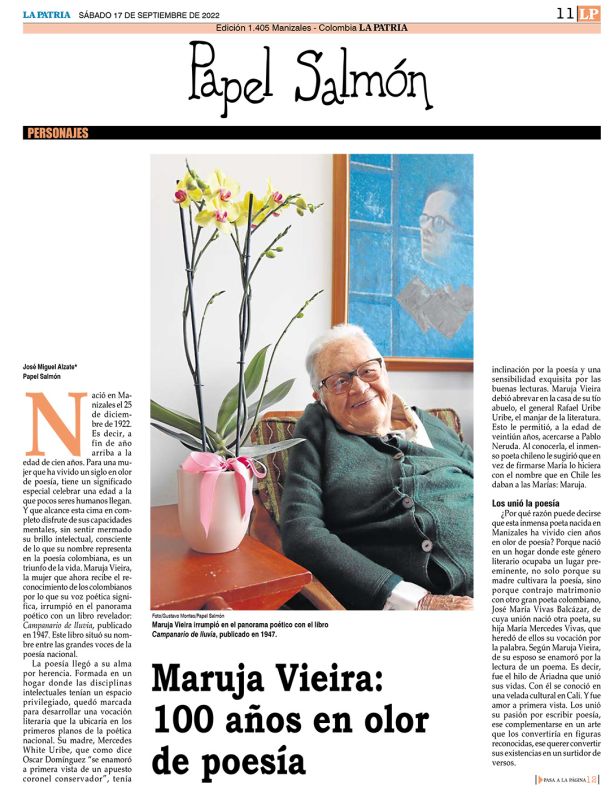 Reseña de José Miguel Alzate sobre Maruja Vieira a propóstito de sus 100 años y del homenaje en curso: 100 AÑos, 100 Poemas Maratón Digital de Poesía, en la Separ…